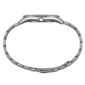 Vidro: cristal mineral Funções: analógico, calendário Resistencia à água: 50 m Características: com caixa de aço inoxidável e pulseira de aço inoxidável Diâmetro da caixa: 4,4 cm Espessura da caixa: 9 mm Fundo de pressão Alimentação do maquinário: bateria Mostrador prateado