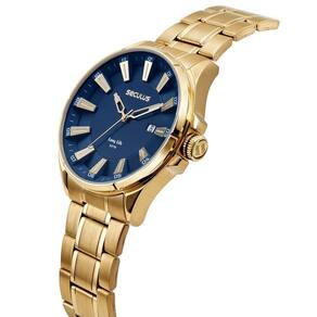 Relógio seculus masculino ref: 77311gpsvda2 esportivo dourado Descrição do produto: Vidro: cristal mineral Funções: analógico, calendário Resistencia à água: 50 m Características: com caixa de aço inoxidável e pulseira de aço inoxidável Diâmetro da caixa: 4,6 cm Fundo de rosca Linha long life Alimentação do maquinário: bateria Mostrador azul com todos os números de 2 anos Marca: Não Informado Ean: 7909669196372