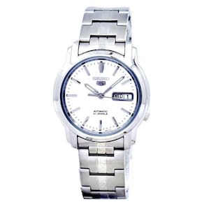 Relógio masculino Seiko 5 Automatic 21 Jewels SNKK65 SNKK65K1 SNKK65K Um ótimo achado em aço inoxidável e movimento automático, é o último a decepcionar seu usuário. Com uma vida útil mínima de 15 anos, é o movimento interno da Seiko que fabrica este relógio de qualidade, perdendo apenas para os luxos mecânicos suíços, muito mais caros. Ele tem as mesmas batidas por minuto de muitos de seus outros concorrentes caros, mas eles não têm a durabilidade da Seiko. Em uma palavra: é imbatível. Características: Caixa de aço inoxidável Calibre da pulseira de aço inoxidável: 7S26 21 Jewels Movimento automático Hardlex Crystal Silver Dial Sweeping em segunda mão, exibição de dia e data, tela analógica transparente, traseira, dobrável duas vezes com botão de pressão, 30 m de resistência à água, diâmetro aproximado da caixa: 38 mm Espessura aproximada da caixa: 11 mm
