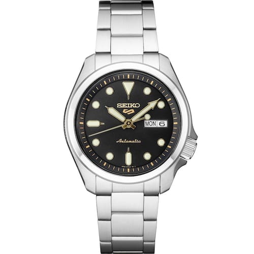 Mostre seu estilo. Faça sua jogada. Por mais de 50 anos, a Seiko 5 Sports oferece níveis consistentemente altos de confiabilidade, durabilidade e desempenho. Para uma cronometragem confiável em sua vida cotidiana, o excepcional relógio esportivo masculino SRPE55 é alimentado por um movimento automático com uma reserva de marcha de aproximadamente 41 horas e possui um calendário de dia/data, ponteiros e marcadores LumiBrite e um fundo de caixa transparente. Com uma caixa e pulseira duráveis de aço inoxidável e um impressionante mostrador preto, este relógio versátil é resistente à água de 100 metros, perfeito para seu estilo, não importa o que seu dia lhe reserva.