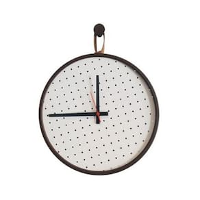 Relógio Short Strip Marrom Alça Caramelo Mostrador Branco Perfurado 40 cm Moldura em Alumínio que proporciona leveza ao produto, e permite acabamento em pintura epóxi-pó não enferruja .