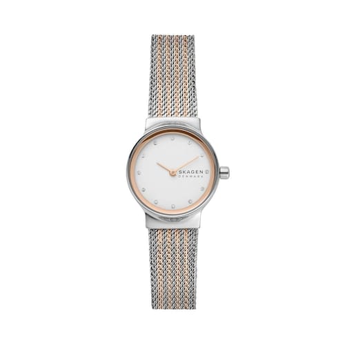 Skagen Relógio feminino de quartzo Freja de aço inoxidável, Malha de ouro rosa/prata, Tamanho único, Freja Lille