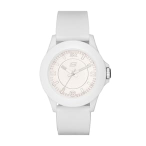 Skechers Rosencrans Relógio esportivo casual feminino de quartzo médio de plástico e silicone, Branco, Rosencrans tamanho médio - Skechers é uma marca global de estilo de vida atlético para todos. Os relógios Skechers são projetados com moda e versatilidade em mente, variando de produtos para o seu ritmo de vida diário em movimento até produtos voltados para o verdadeiro desempenho quando você quiser suar. - O relógio de tamanho médio Skechers Rosencrans combina sua mente de moda e estilo de vida agitado, tornando-o um acessório essencial para qualquer lugar. - Tamanho da caixa: 40 mm; Tamanho da pulseira: 20 mm; movimento de quartzo com visor analógico de três pontos; importado - Caixa redonda de policarbonato; pulseira de silicone branca - Resistente à água até 50 m: adequado para períodos curtos de natação recreativa e banho, mas não para mergulho ou snorkeling; 5 ATM