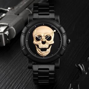 Relógio Skmei 9178 Caveira Crânio 3D Skull ógico Luxo Características: Marca: Skmei Tipo de Item: Relógios de pulso de quartzo Largura de banda: 22mm Movimento: Quartzo Comprimento da Pulseira: 22cm Material da caixa: Aço Inoxidável Formato do Estojo: Redondo Janela Dial Tipo de Material: Vidro Profundidade de Resistência a Água: 3 Bar Diâmetro 30 m resistente à Água Dial: 45mm Estilo: Fashion e Casual Fecho: Fivelas Modelo Número:9178 Material da Faixa: Aço Inoxidável Modelo Número: 9178 Cores : Ouro e Prata 30M resistente à Água Peso: Aproximadamente: 150g Marca: Não Informado