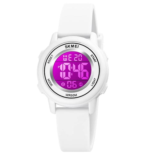 Introdução do produto Este relógio esportivo digital foi projetado para crianças, meninos, meninas e crianças. Pulseira de PU de alta qualidade e não tóxica, além de excelente acabamento, este relógio oferece grande suavidade e conforto. Características do produto O display digital oferece conveniência para aprender, e o relógio é leve e adequado para pulsos pequenos. Movimentos eletrônicos inovadores: forneça um tempo preciso. Pulseira de gel de sílica de alta qualidade. Vidro de resina de alta transparência, não é fácil de usar. 50m à prova d'água: você pode usá-lo para lavar as mãos ou tomar banho, mas nunca apertar nenhum botão na água ou colocá-lo em água quente. Aparência moderna e ótima durabilidade, este relógio parece muito mais caro do que realmente é. Resistente a choques e a arranhões nas teclas: perfeito para esportes ao ar livre e em ambientes fechados. Multifuncional: janela de calendário com data, semana, alarme, 12/24H, 50M à prova d'água, display de luz de fundo EL, à prova de choque, cronógrafo de 1/100 segundos. Especificação Diâmetro do mostrador: 1,34 pol/3,4 cm Espessura da caixa: 0,47 pol/1,2 cm Largura da pulseira: 0,55 pol/1,4 cm Comprimento da pulseira: 9,25 pol/23,5 cm Comprimento do pulso: 6,5-8,3 pol/16,5-21,0 cm Peso do produto: 0,81 onças/23 G Tipo de fecho: fivela Tipo de material: gel de sílica Material da caixa: ABS Nota: Impermeável (50 metros), não adequado para muito tempo debaixo d'água atividades como mergulho. Por favor, NÃO PRESSIONE nenhum botão debaixo d'água Pacote: Kids Digital Sports Watch × 1 caixa de presente × 1 manual de instruções × 1