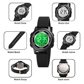 Introdução do produto Este relógio esportivo digital foi projetado para crianças, meninos, meninas e crianças. Pulseira de PU de alta qualidade e não tóxica, além de excelente acabamento, este relógio oferece grande suavidade e conforto. Características do produto O display digital oferece conveniência para aprender, e o relógio é leve e adequado para pulsos pequenos. Movimentos eletrônicos inovadores: forneça um tempo preciso. Pulseira de gel de sílica de alta qualidade. Vidro de resina de alta transparência, não é fácil de usar. 50m à prova d'água: você pode usá-lo para lavar as mãos ou tomar banho, mas nunca apertar nenhum botão na água ou colocá-lo em água quente. Aparência moderna e ótima durabilidade, este relógio parece muito mais caro do que realmente é. Resistente a choques e a arranhões nas teclas: perfeito para esportes ao ar livre e em ambientes fechados. Multifuncional: janela de calendário com data, semana, alarme, 12/24H, 50M à prova d'água, display de luz de fundo EL, à prova de choque, cronógrafo de 1/100 segundos. Especificação Diâmetro do mostrador: 1,34 pol/3,4 cm Espessura da caixa: 0,47 pol/1,2 cm Largura da pulseira: 0,55 pol/1,4 cm Comprimento da pulseira: 9,25 pol/23,5 cm Comprimento do pulso: 6,5-8,3 pol/16,5-21,0 cm Peso do produto: 0,81 onças/23 G Tipo de fecho: fivela Tipo de material: gel de sílica Material da caixa: ABS Nota: Impermeável (50 metros), não adequado para muito tempo debaixo d'água atividades como mergulho. Por favor, NÃO PRESSIONE nenhum botão debaixo d'água Pacote: Kids Digital Sports Watch × 1 caixa de presente × 1 manual de instruções × 1