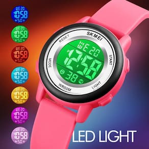 Relógio para crianças: atrai meninos e meninas com mais de 4 anos. 7 luzes de fundo LED comutáveis, display digital, calendário, data, semana, 12/24 horas, alarme, cronômetro, 50M à prova d'água. Isso ajudará as crianças a descrever o tempo de vários ângulos e a aprender a ler o tempo e a desenvolver bons hábitos para crianças
