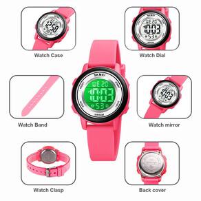 Introdução do produto Este relógio esportivo digital foi projetado para crianças, meninos, meninas e crianças. Pulseira de PU de alta qualidade e não tóxica, além de excelente acabamento, este relógio oferece grande suavidade e conforto. Características do produto O display digital oferece conveniência para aprender, e o relógio é leve e adequado para pulsos pequenos. Movimentos eletrônicos inovadores: forneça um tempo preciso. Pulseira de gel de sílica de alta qualidade. Vidro de resina de alta transparência, não é fácil de usar. 50m à prova d'água: você pode usá-lo para lavar as mãos ou tomar banho, mas nunca apertar nenhum botão na água ou colocá-lo em água quente. Aparência moderna e ótima durabilidade, este relógio parece muito mais caro do que realmente é. Resistente a choques e a arranhões nas teclas: perfeito para esportes ao ar livre e em ambientes fechados. Multifuncional: janela de calendário com data, semana, alarme, 12/24H, 50M à prova d'água, display de luz de fundo EL, à prova de choque, cronógrafo de 1/100 segundos. Especificação Diâmetro do mostrador: 1,34 pol/3,4 cm Espessura da caixa: 0,47 pol/1,2 cm Largura da pulseira: 0,55 pol/1,4 cm Comprimento da pulseira: 9,25 pol/23,5 cm Comprimento do pulso: 6,5-8,3 pol/16,5-21,0 cm Peso do produto: 0,81 onças/23 G Tipo de fecho: fivela Tipo de material: gel de sílica Material da caixa: ABS Nota: Impermeável (50 metros), não adequado para muito tempo debaixo d'água atividades como mergulho. Por favor, NÃO PRESSIONE nenhum botão debaixo d'água Pacote: Kids Digital Sports Watch × 1 caixa de presente × 1 manual de instruções × 1