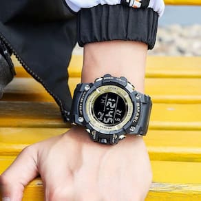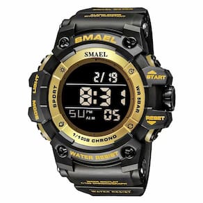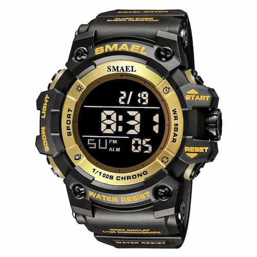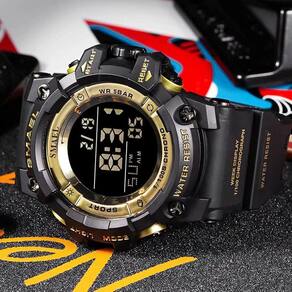 Relógio esportivo digital masculino SMAEL, impermeável, rosto grande, militares, relógios de pulso em ouro preto com tela de LED, alarme, cronômetro
