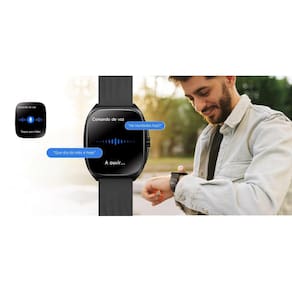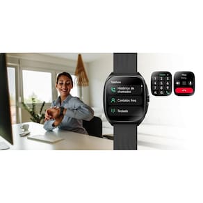 Smartwatch com funções de chamada, monitoramento de saúde e conectividade.Processador
