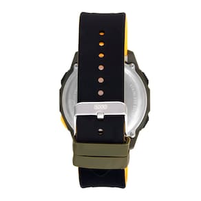Características: com caixa em Policarbonato Verde e pulseira em Silicone Preto/Laranja