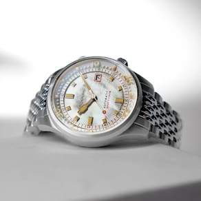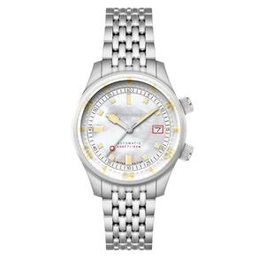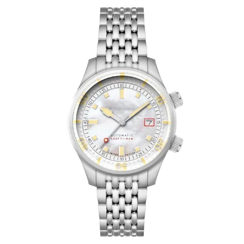 Relógio Spinnaker Bradner Pearl Diver Automático Pearl Essence Sp-5158-22 Uma homenagem ao físico americano Hugh Bradner, mais conhecido por inventar a roupa de mergulho de neoprene e por sua participação no Projeto Manhattan, que ajudou a desenvolver a bomba atômica na Segunda Mundial. Especificações Técnicas Mecanismo: Japonês Seiko NH35 Automático Material da caixa: Aço Inoxidável Diâmetro da Caixa: 42mm Expessura da Caixa: 15mm Lug to Lug: 50mm Lente: Lente de safira Índice e Luminoso: Índice Aplicado com Swiss Newlite Moldura: moldura fixa Cor do Mostrador: Branco Pulseira: pulseira de aço inoxidável de 20 mm com fivela dobrável e botão Resistência à água: 180m : internacional de 2 anos. Marca: Não Informado