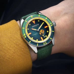 Relógio Spinnaker Fleuss Bob Esponja Plankton Green Frenemies Limited Edition SP-5160-02 A Spinnaker Watches tem o prazer de revelar seu mais novo empreendimento, uma colaboração inovadora com a adorada série Bob Esponja da Nickelodeon, em comemoração ao 25º aniversário do icônico programa. Ilumine suas aventuras com relógios Spinnaker Projetados para o mergulhador e aventureiro ávido, nossos relógios apresentam luminescência radiante que garante uma legibilidade clara nas profundezas mais escuras e em condições de pouca luz. Seja explorando reinos subaquáticos ou navegando em aventuras noturnas, os mostradores e ponteiros luminosos do Spinnaker fornecem o brilho de que você precisa para permanecer no curso. Movimento Miyota 8245 Automático Com tecnologia de movimento automático no centro, nossos relógios se adaptam facilmente ao seu estilo de vida ativo, eliminando a necessidade de corda manual. - Reserva de marcha de 40 horas - 21.600 BHP batidas por hora - 21 joias - Com submostrador de pequenos segundos Especificações Técnicas Material da caixa: Aço Inoxidável Diâmetro da Caixa: 43mm Expessura da Caixa: 13mm Lug to Lug: 51mm Indice e Luminoso: Índice aplicado com Swiss Super Luminova Lente: Lente de safira Moldura: moldura bidirecional com vidro Cor do Mostrador: Verde Pulseira: pulseira de nylon verde de 22mm com fivela de alça Resistência à água: 150m : internacional de 2 anos.