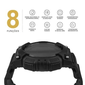 O Tech Armor é mais do que um simples relógio. O dispositivo da Gorila não só marcar as horas, como também possui cronômetro e calendário integrados; alarmes programáveis; luz de fundo e dual time. Tudo isso associado a um design arrojado, fabricado com materiais duráveis e resistentes à água. Não perca um segundo e adquira já o seu!ESPECIFICAÇÕESMarca: GshieldResistente à águaAlarme: diário de mês e dataFunções de tempo: hora, minuto, segundo (formato 12/24)Calendário: 2000 - 2099Cronômetro regressivo: limite 24hITENS INCLUSOS1x relógio Tech ArmorMedidas aproximadas do produto- Comprimento: 7 cm- Altura: 21 cm- Largura: 14 cm- Peso: 0,3 g