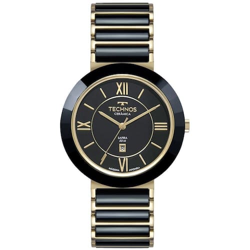 Relógio technos ceramic feminino preto com detalhes em dourado. Além do vidro de safira, este modelo foi desenvolvido totalmente em cerâmica, um material muito valorizado na indústria relojoeira pela vantagem de ser resistente à arranhões, livre de corrosão, leve e durável, além de conter um brilho característico inigualável. Produto da marca technos. Especificações do produto