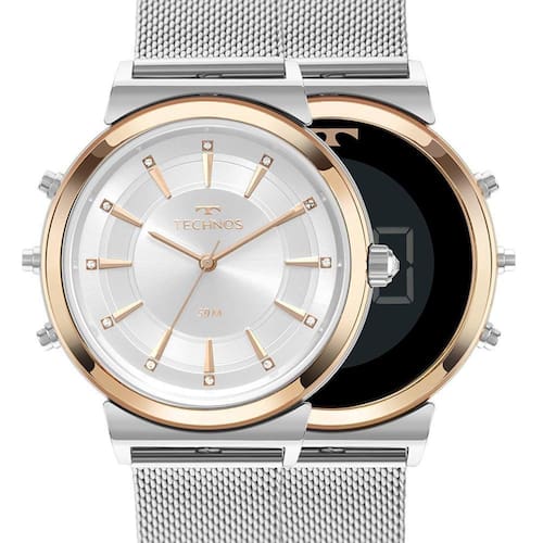 Coleção Curvas Cor Prata Formato Redondo Tipo de Tela Analógico, Digital Resistência 50 metros Calendário Sim Material do Vidro Cristal Mineral Material da Caixa Aço Material da Pulseira Aço Tamanho da Caixa 40 m Espessura da Caixa 12 mm Tamanho da Pulseira 21 cm Peso 103 g