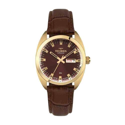 Estamos há mais de 50 anos no mercado oferecendo uma ampla variedade de acessórios, incluindo relógios e óculos de sol, com as melhores marcas e estilos. Além disso, a nossa equipe é treinada para oferecer um atendimento excepcional, garantindo que cada cliente seja tratado com o respeito e a atenção que merece.Realizando a compra, não deixe de nos avaliar Sua opinião é muito importante para aperfeiçoar cada vez mais o nosso trabalho.ESPECIFICAÇÕES TÉCNICAS- Marca: Technos- Referência: 8205OP/0M- Gênero: Masculino - Tipo de mostrador: Analógico - Tipo de movimento: Automático - Função: Calendário duplo- Tipo de fecho: Fivela - Cor da caixa: Dourado- Cor do mostrador: Marrom- Cor da pulseira: Marrom- Material da caixa: Metal- Material da pulseira: Couro - Largura da caixa: 4cm- Resistência à água: 5 ATM 50m - : 12 meses Ean: 7891530860287