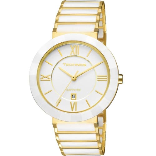Características: Relógio Technos Elegance Ceramic Sapphire - 2015CE/4B Caixa Em Aco, Coroa Estampada Com Logomarca Technos, Pulseira Em Cerâmica Branca Com Filete Dourado Ao Redor De Cada Elo, Analógico, Datador, Ponteiro Dourado, Cor Índex: Dourado, Resistência A Água: 50 Metros (5 Atm) Tipo De Vidro: Safira,