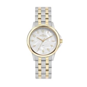 Descrição do Produto: Caixa de Aço Inox Pulseira de Aço Inox Fundo de Pressão Resistente à Água 5 Atm Diâmetro / Largura da Caixa: 32.00 MM Vidro de Cristal Mineral Funções: Analógico Maquina Japonesa Alimentação do Maquinário: Bateria Mostrador Madeperola branca com todos os números Prateado com Dourado