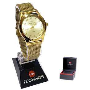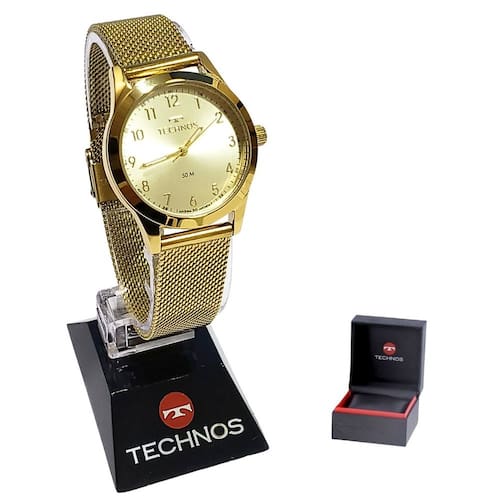 Marca: Technos Modelo: 2035MUS/1X Tipo de relógio: Analógico Gênero: Feminino Cor da caixa: Dourado Cor da pulseira: Dourado Estilo: Casual Alarme: Não Cronômetro: Não Calendário: Não Luz: Não – ponteiros fluorescentes Resistência à água: Sim – 5 ATM = 50 metros Tipo de fecho: Fivela de gancho Material da Caixa: Aço Inoxidável Material da Pulseira: Aço Inoxidável Tamanho da caixa: 32 mm Espessura da caixa: 8 mm Comprimento da Pulseira: 22 cm Largura da Pulseira: 15 mm Peso: 55 gramas Tampa do fundo: Pressão Alimentação: Bateria Garantia do Fabricante: 12 meses Fabricante: Technos da Amazônia Ind e Com S/A
