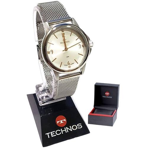 Marca: Technos Modelo: 2035MVD/1K Tipo de relógio: Analógico Gênero: Feminino Cor da caixa: Prateado Cor da pulseira: Prateado Estilo: Casual Alarme: Não Cronômetro: Não Calendário: Não Luz: Não Resistência à água: Sim – 5 ATM – 50 m Tipo de fecho: de Pressão Material da Caixa: Aço Inoxidável Material da Pulseira: Mesh de Aço Inoxidável Características do vidro: Cristal Mineral Tamanho da Caixa: 35 mm Espessura da caixa: 8 mm Peso: 53 gramas Alimentação: Bateria Garantia do Fabricante: 12 meses Fabricante: Technos da Amazônia Ind e Com S/A