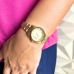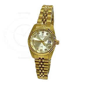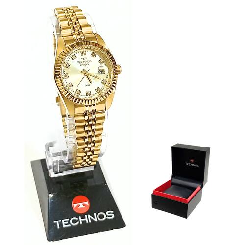 Marca: Technos Modelo: 2015CEL/1X Tipo de relógio: Analógico Gênero: Feminino Cor da caixa: Dourado Cor da pulseira: Dourado Estilo: Casual Alarme: Não Cronômetro: Não Calendário: Sim Luz: Não Resistência à água: Sim – 5 ATM = 50 metros Tipo de fecho: Dobrável, com trava lateral Material da caixa: Aço Inoxidável Material da pulseira: Aço Inoxidável Características do vidro: Cristal Mineral Tamanho da caixa: 28 mm Espessura da caixa: 10 mm Comprimento da pulseira: 22 cm Largura da pulseira: 10 mm Tampa do fundo: Pressão Peso: 56 Gramas Alimentação: Bateria Garantia do Fabricante: 12 meses Fabricante: Technos da Amazônia Ind e Com S/A