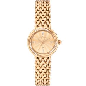 Características Formato do Relógio: Redondo Composição do Vidro: Cristal Mineral Material da Caixa: Aço Inox Cor da Caixa: Dourado Cor do mostrador: Dourado Material da Pulseira: Aço Inox Cor da Pulseira: Dourado Mecanismo: Analógico quartz