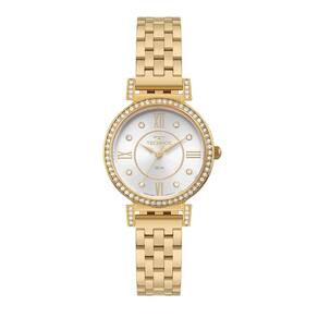 Relógio Boutique apresenta um novo lançamento clássico. Apresenta aplicação de pedras no aro externo e interno, e no mostrador de fácil leitura na cor prata, que conta com numeração romana nos marcadores de hora. Produto 100% em aço inoxidável, banhado em dourado, com máquina quartz Japonesa Miyota e resistência à água de 50 metros