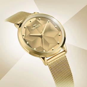Relógio Technos Feminino Brilho Dourado - 203aag/1d 203aag/1d O lançamento monocromático da linha Brilho apresenta pulseira de mesh e caixa com design moderno. Ele possui um elegante mostrador facetado, que conta com um acabamento especial espelhado e reflete ainda mais a luz. Produto 100% em aço inoxidável em banho dourado, com máquina quartz Japonesa Miyota e resistência à água de 50m. Banho - Dourado Tipo - Analógico Cor da Caixa - Dourado Material da Pulseira - Aço Formato - Redondo Cor do Mostrador - Dourado Garantia - 12 meses Cor da Pulseira - Dourado Largura da Caixa (cm) - 3,8 Resistência à Água - 5 ATM meli_title - Relógio Technos Feminino Brilho Dourado - 203AAG/1D Modelo_ML - Relógio Technos Feminino Brilho Dourado - 203AAG/1D Cor - Dourado Tamanho - Médio Gênero - Feminino