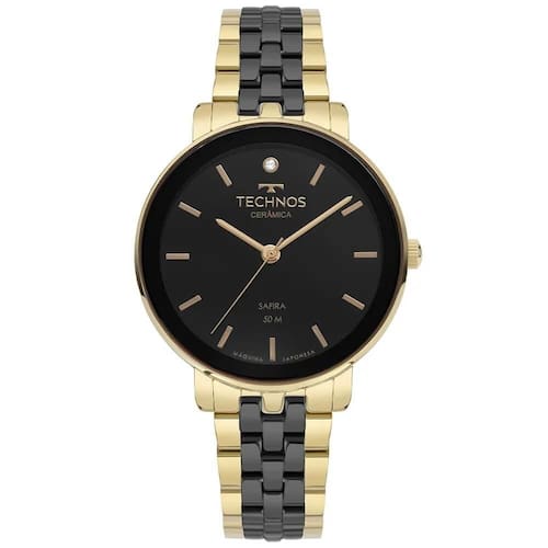 Com mostrador minimalista e a sofisticada pulseira de aço em 5 links com aplicação de cerâmica. Seu mostrador minimalista conta com a elegante presença de uma pedra solitária na posição de 12 horas, além da assinatura de linha. Seu diferencial está nos materiais utilizados em sua composição: feito em aço inoxidável, ele apresenta aplicação de cerâmica na pulseira e no aro externo, além de possuir vidro de safira, altamente resistentes a riscos e arranhões. Produto 100% em aço inoxidável, com aplicação de cerâmica, máquina quartz Japonesa Miyota e resistência à água de 50 metros