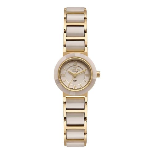 Relógio Technos Feminino Ceramic/saphire Dourado - 2035lwf/1x 2035lwf/1x A linha Ceramic/Saphire apresenta seu seu novo modelo, com aro externo facetado em cerâmica e lente de safira. Seu mostrador é clássico e de fácil leitura e ainda conta com combinações de cores em tons de nude, além de possuir combinações de aço inoxidável com cerâmica. Produto 100% em aço inoxidável, com máquina quartz japonesa Miyota, resistência à água de 50 metros. Versão com pulseira de aço com cerâmica em elos sólidos. Banho - Dourado Tipo - Analógico Cor da Caixa - Dourado Material da Pulseira - Cerâmica Material da Caixa - Aço Formato - Redondo Cor do Mostrador - Bege Garantia - 12 meses Cor da Pulseira - Dourado Largura da Caixa (cm) - 2,3 Resistência à Água - 5 ATM plaintext_description_meli - Relógio Technos Feminino Ceramic/saphire Dourado - 2035LWF/1XA linha Ceramic/Saphire apresenta seu seu novo modelo, com aro externo facetado em cerâmica e lente de safira. Seu mostrador é clássico e de fácil leitura e ainda conta com combinações de cores em tons de nude, além de possuir combinações de aço inoxidável com cerâmica. Produto 100% em aço inoxidável, com máquina quartz japonesa Miyota, resistência à água de 50 metros. Versão com pulseira de aço com cerâmica em elos sólidos. meli_title - Relógio Technos Feminino Ceramic/saphire Dourado - 2035LWF/1X Modelo_ML - Relógio Technos Feminino Ceramic/saphire Dourado - 2035LWF/1X Cor - Dourado Tamanho - Pequeno Gênero - Feminino