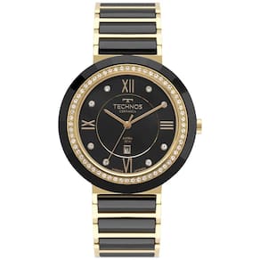 Elegância e sofisticação definem o estilo do Technos Ceramic Sapphire 2015CEJ/2P. Este modelo feminino une o brilho do dourado ao requinte da cerâmica preta, criando uma peça de impacto visual marcante e acabamento premium. O mostrador preto com marcadores em cristais e numeração romana agrega delicadeza e glamour, enquanto a moldura cravejada de pedras garante um visual deslumbrante.