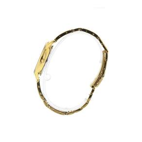 O mostrador preto minimalista com marcadores dourados e um cristal em destaque às 12h reforçam o requinte da peça. A resistência à água de 5 ATM (50 metros) garante segurança no uso diário, enquanto o vidro de safira oferece máxima proteção contra riscos.