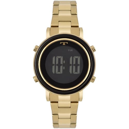 Relógio Technos Feminino com caixa e pulseira de aço dourado. Seguindo a tendência de relógios com maquinismo digital, ele é moderno com design feminino elegante. Resistente à água 50 metros.