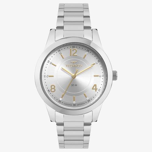 GÊNERO: FEMININO BANHO: PRATA TIPO: ANALÓGICO COR DA CAIXA: PRATA MATERIAL DA PULSEIRA: AÇO MATERIAL DA CAIXA: AÇO FORMATO: REDONDO COR DO MOSTRADOR: PRATA GARANTIA: 12 MESES (Fabricante Technos) COR DA PULSEIRA: PRATA LARGURA DA CAIXA (CM): 3,8 RESISTÊNCIA À ÁGUA: 5 ATM Marca: RELOGIO TECHNOS