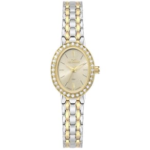 Relógio Technos Feminino Ref: 2035nah/1d Bracelete Oval Bicolor Descrição do Produto: Caixa de Aço Inox Pulseira de Aço Inox Estilo Bacelete Fundo Resistente à Água 5 Atm Diâmetro / Largura da Caixa: 20.00 MM x 25.00 MM Vidro de Cristal Mineral Funções: Analógico Maquina Japonesa Alimentação do Maquinário: Bateria Mostrador Dourado Aro Externo de Pedras Prateado com dourado de 1 Ano Marca: Não Informado