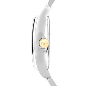 Relógio Technos Feminino Ref: 2035naq/1k Retangular Bicolor Descrição do Produto: Caixa de Aço Inox Pulseira de Aço Inox Fundo Resistente à Água 5 Atm Diâmetro / Largura da Caixa: 25.00 MM x 27.00 MM Vidro de Cristal Mineral Funções: Analógico Maquina Japonesa Alimentação do Maquinário: Bateria Mostrador Prateado com números e pedras Prateado com Dourado de 1 Ano Marca: Não Informado Ean: 7891530847738