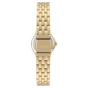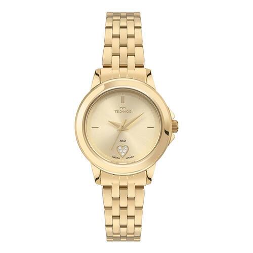 Relógio Technos Feminino Ref: 2035ncx/1x Fashion Dourado Descrição do Produto: Caixa de Aço Inox Pulseira de Aço Inox Fundo Resistente à Água 5 Atm Diâmetro / Largura da Caixa: 30.00 MM Vidro de Cristal Mineral Funções: Analógico Maquina Japonesa Alimentação do Maquinário: Bateria Mostrador Dourado com detalhe de coração de pedras de 1 Ano
