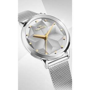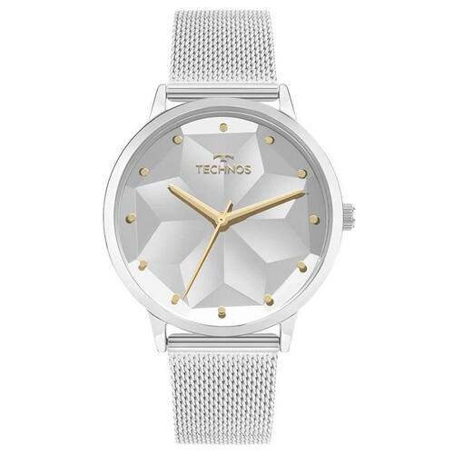 Relógio Technos Feminino Ref: 203aaf/1k Fashion Brilho Prateado Descrição do Produto: Caixa de Aço Inox Pulseira de Malha de Aço Mesh Fundo de Pressão Resistente à Água 5 Atm Diâmetro / Largura da Caixa: 39.00 MM Vidro de Cristal Mineral Funções: Analógico Maquina Japonesa Alimentação do Maquinário: Bateria Mostrador prateado facetado