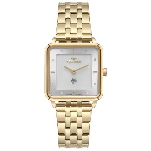 Relógio Technos Feminino Ref: Gl22am/1k Slim Retangular Dourado Descrição do Produto: Caixa de Aço Inox Pulseira de Aço Inox Fundo Resistente à Água 3 Atm Diâmetro / Largura da Caixa: 26.00 MM x 26.00 MM Espessura da Caixa: 7.00 MM Vidro de Cristal Mineral Funções: Analógico Maquina Japonesa Alimentação do Maquinário: Bateria Mostrador Prateado com Madeperola branca e pedras de 1 Ano Marca: Não Informado Ean: 7891530848230