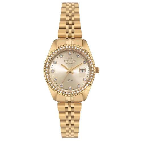 Relógio Technos Feminino Riviera Dourado com Cristais - 2015CEY/1X 28,5mm