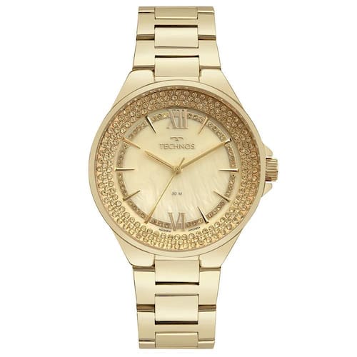 Lançamento da linha St. Moritz, com uma nova caixa e madrepérola aplicada no centro do mostrador. Ele também apresenta aplicação de pedras por todo o aro interno e nos marcadores de hora, além da elegante numeração romana nas posições de 6/12h. Produto 100% em aço inoxidável, com máquina quartz japonesa Miyota e resistência à água de 50 metros.