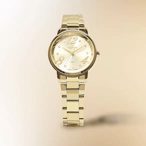 Relógio Technos Trend, lançamento de novo modelo com caixa inédita. Ele possui mostrador com numeração arábica diferenciada nas posições de 4/8/12h, com números grandes, além das pedras aplicadas nos demais marcadores de hora. Produto 100% em aço inoxidável, com máquina quartz japonesa Miyota e resistência à água de 50 metros.