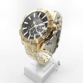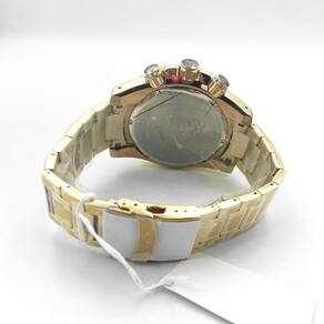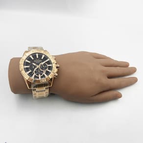 Características Formato do Relógio: Redondo Composição do Vidro: Cristal mineral Material da Caixa: Aço Inox Cor da Caixa: Dourado Cor do mostrador: Cinza Material da Pulseira: Aço Inox Cor da Pulseira: Dourado Mecanismo: Analógico Multifunção
