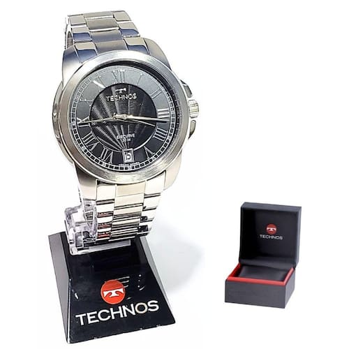 Marca: Technos Modelo: 2417AB/1P Tipo de relógio: Analógica Gênero: Masculino Cor da caixa: Prateado Cor da pulseira: Prateado Estilo: Casual Alarme: Não Cronômetro: Não Calendário: Sim Luz: Não Resistência à água: Sim – 5 ATM = 50 metros Tipo de fecho: Dobrável, com trava lateral Material da Caixa: Aço Inoxidável Material da Pulseira: Aço Inoxidável Características do vidro: Cristal Mineral Tamanho da caixa: 44 mm Espessura da caixa: 12 mm Comprimento da pulseira: 24 cm Largura da pulseira: 20 mm Tampa do fundo: Rosqueado Peso: 130 Gramas Alimentação: Bateria Garantia do Fabricante: 12 meses Fabricante: Technos da Amazônia Ind e Com S/A