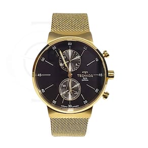 Marca: Technos Modelo: VD36AA/1P Tipo de relógio: Analógica Gênero: Masculino Cor da caixa: Dourado Cor da pulseira: Dourado Estilo: Casual Alarme: Não Cronógrafo: Sim Calendário: Não Luz: Não – ponteiros fluorescentes Resistência à água: Sim – 5 ATM = 50 metros Tipo de fecho: Fivela de gancho Material da Caixa: Aço Inoxidável Material da Pulseira: Mesh de Aço Inoxidável Características do vidro: Safira Tamanho da caixa: 40 mm Espessura da caixa: 10 mm Comprimento da pulseira: 22 cm Largura da pulseira: 20 mm Tampa do fundo: Pressão Peso: 81 Gramas Alimentação: Bateria Garantia do Fabricante: 12 meses Fabricante: Technos da Amazônia Ind e Com S/A
