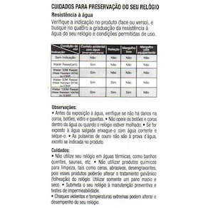 Resistência a água: 5 ATM (verifique condições permitidas de uso no manual)