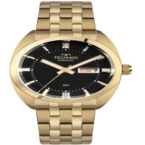 Relógio Technos Masculino Automático Dourado - 8205OR/1P Informações Básicas: - Marca: Technos - Referência: 8205OR/1P - Gênero: Masculino - Coleção: Automático - Estilo: Social - Tamanho: Médio Características do Relógio: - Composição Do Vidro: Cristal Mineral - Material Da Caixa: Aço Inox - Cor Da Caixa: Dourado - Material Da Pulseira: Aço Inox - Cor Da Pulseira: Dourado - Tampa Posterior: Fundo Rosqueado - Fecho: Implantação com trava e botão lateral - Cor do Mostrador: Preto - Formato da Caixa: Redondo - Mecanismo: Analógico - Tipo de Energia: Automático Medidas - Diâmetro Da Caixa: 4,0 cm - Espessura da Caixa: 1,3 cm - Comprimento da Pulseira: 22 cm Resistência à Agua - Wr: 5atm - Pode Lavar As Mãos: Sim - Pode Usar Em Agua Corrente: Sim - Pode Usar Na Piscina: Não - Pode Usar Em Mergulho Profundo: Não Funções Especiais: - Calendário Analógico Duplo Peso do Relógio: 148 gr Informações Importantes: - Manual em Português e Certificado de - de 12 meses do Fabricante Marca: Não Informado
