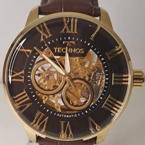 Relógio Technos Masculino Automático Esqueleto G3265AT/0M Informações Básicas: - Marca: Technos - Referência: G3265AT/0M - Gênero: Masculino - Estilo: Casual/ Social - Tamanho: Grande Características do Relógio: - Composição Do Vidro: Cristal Mineral - Material Da Caixa: Aço Inox - Cor Da Caixa: Dourado - Material Da Pulseira: Couro - Cor Da Pulseira: Marrom - Tampa Posterior: Fundo Rosqueado - Fecho: Fivela e aguilhão - Cor do Mostrador: Preto - Formato da Caixa: Redondo - Mecanismo: Analógico - Tipo de Energia: Automático Medidas - Diâmetro Da Caixa: 4,6 cm - Espessura da Caixa: 1,4 cm - Comprimento da Pulseira: 24 cm Resistência à Agua - Wr: 10atm - Pode Lavar As Mãos: Sim - Pode Usar Em Agua Corrente: Sim - Pode Usar Na Piscina: Não - Pode Usar Em Mergulho Profundo: Não Funções Especiais: - Calendário Analógico Peso do Relógio: 110g Informações Importantes: - Manual em Português e Certificado de - de 12 meses do Fabricante Marca: Não Informado Ean: 7891530811609