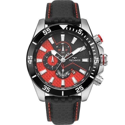 Características Formato do Relógio: Redondo Composição do Vidro: Cristal mineral Material da Caixa: Aço Inox Cor da Caixa: Prata Cor do mostrador: Preto, vermelho Material da Pulseira: Aço Inox Cor da Pulseira: Preto Mecanismo: Analógico Multifunção